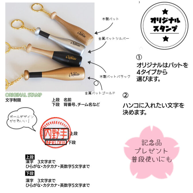 オリジナルバット型キーホルダー オーダー印鑑 NICEBATT印G