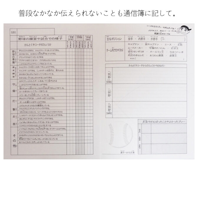 応援マム ジュニア用野球通信簿 学期末 あゆみ 成績表
