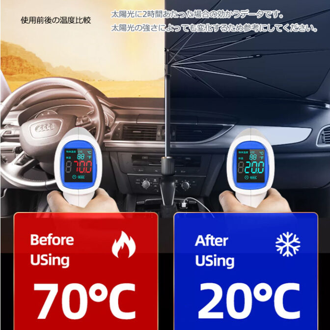 サンシェード 車 折り畳み フロント ガラス 傘タイプ ドアウィンドウ用サンシェード2つ付き 収納ケース付き