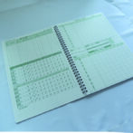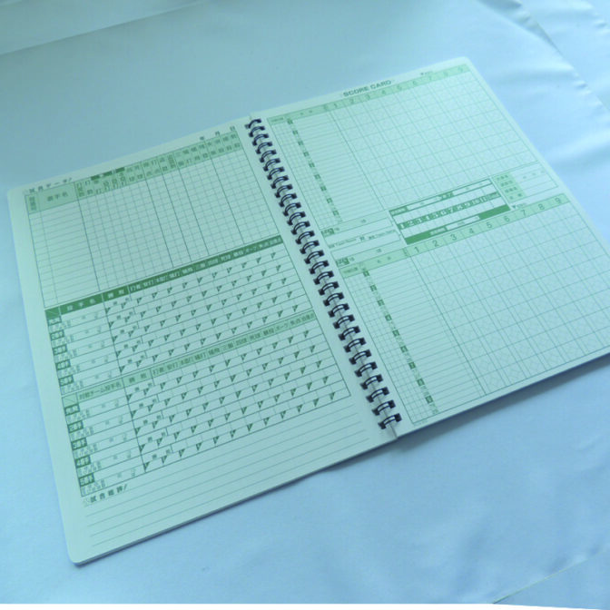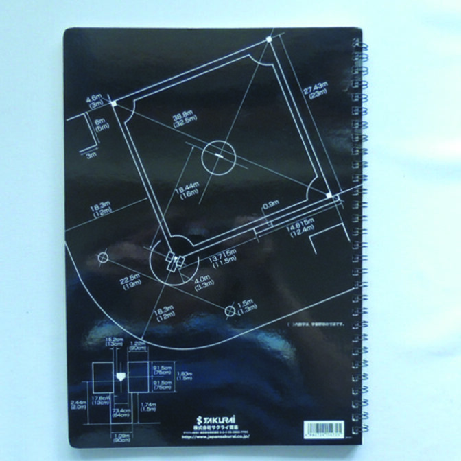 背表紙にはグランド規格、40試合分の結果一覧表と簡単なスコアブックのつけ方がついています。